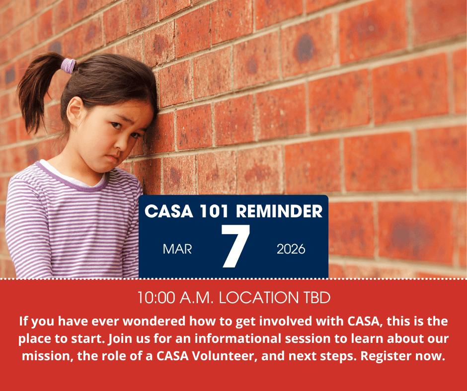 CASA 101 is a free, no-obligation introduction to becoming a Court Appointed Special Advocate. During this session, CASA staff and current Advocates will share how volunteers support children in foster care, what advocacy looks like in real life, and why community members are essential to this work. Register today to learn how you can help change a child’s story.